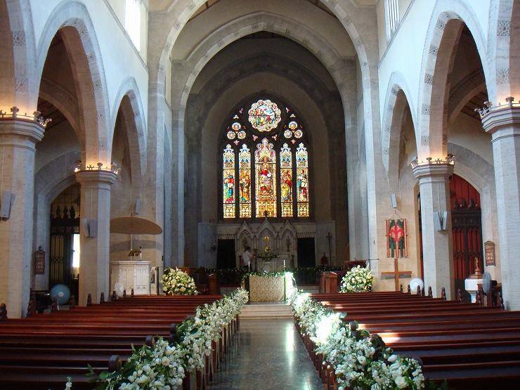 午後から結婚式が行われるらしく、祈り台に綺麗な花がたくさん装飾されていました。