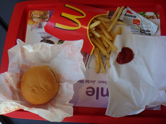 マックのこのハンバーガーとポテトのセットで650円、この大きいポテトのスモールサイズで420円です。