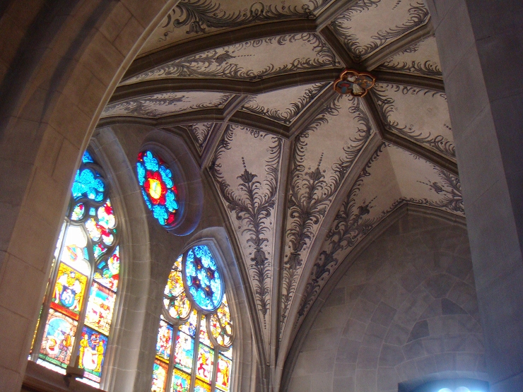 内装にはスイスらしい絵やステンドグラスが沢山あった。