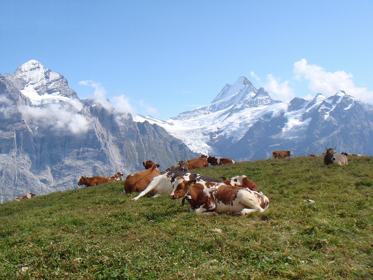アイガー北壁をはじめ4000m級の山をいくつも仰ぎ、カウベルが鳴る牧場が広がる風景は忘れられません。