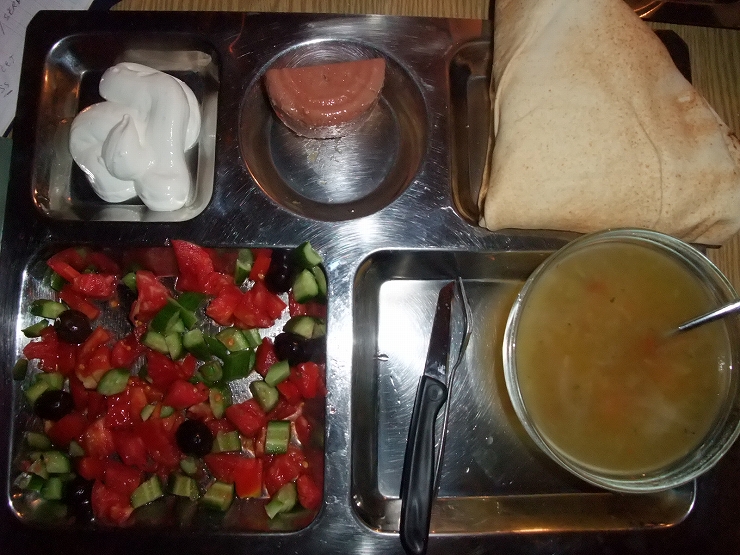 疲れて空腹だったため、宿で夕飯を食べたが画像の通り、肉がドックフードみたいな味で正直美味しいとはいえなかった。この国から痩せ始めていた。