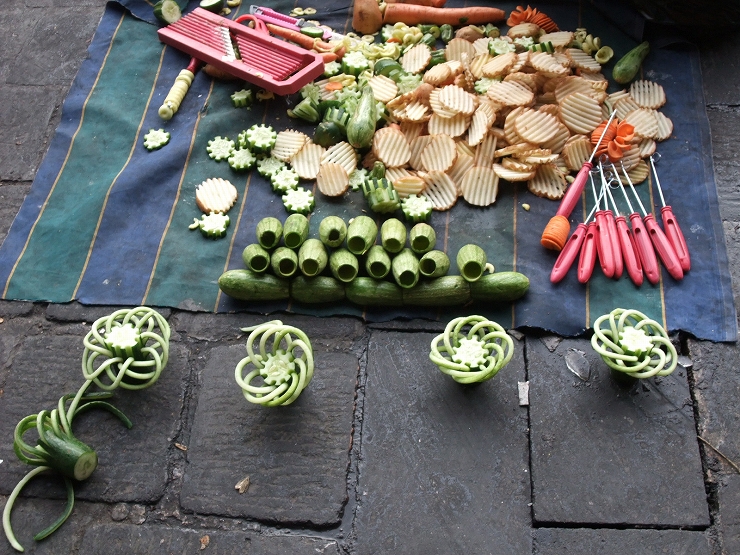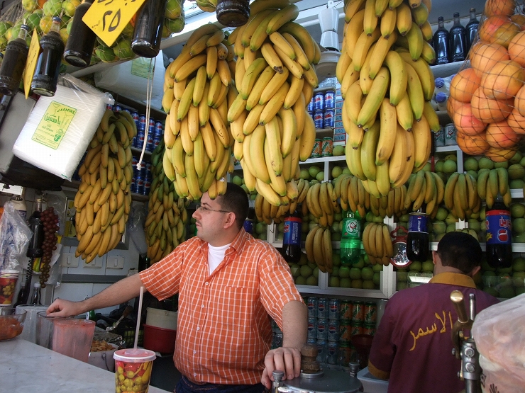スークには日用雑貨から、衣料と様々なものが売られていたが、ここにも行列ができるアイス屋があったり、画像のように野菜を切って飾り売りしていたりと食べ物の印象の強いスークであった。