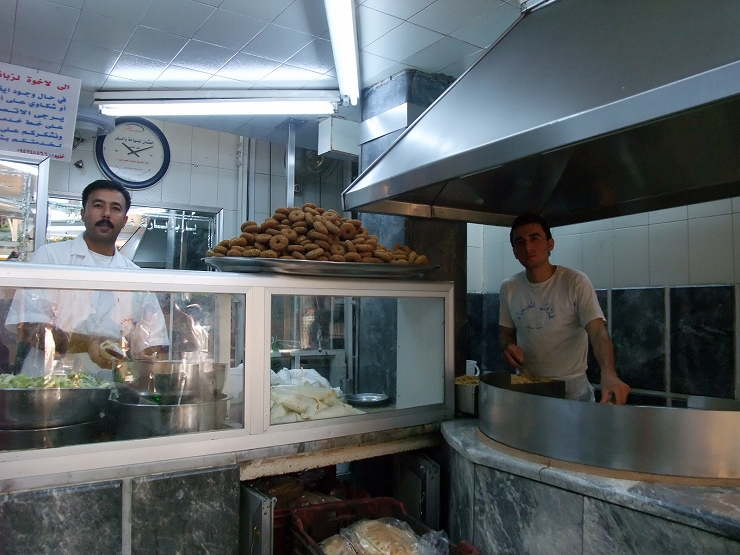 アレッポではサンドイッチ(画像の肉入りドーナッツ入り)が一個50円で結構うまい。