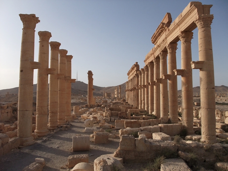 シルクロードの西のはずれ、中東シリアの砂漠に位置するパルミラ遺跡。