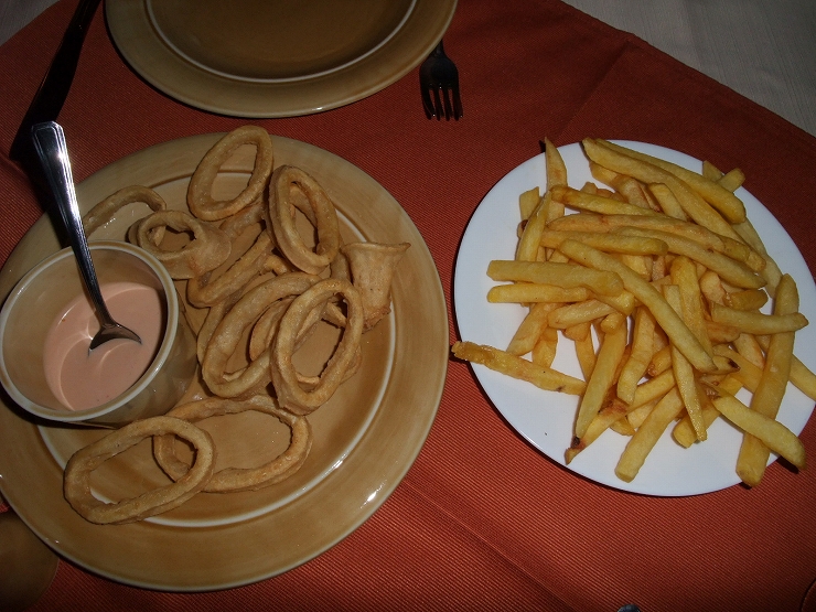 パスタ、ポテト、イカフライ、そして『ジャンボシュリンプ』をオーダーした。