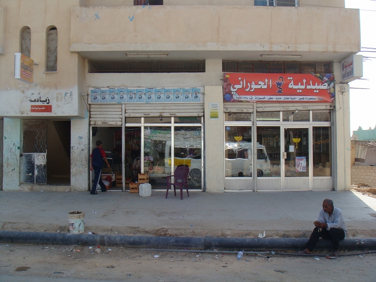 バスを降りてシリア初のアラビア看板。