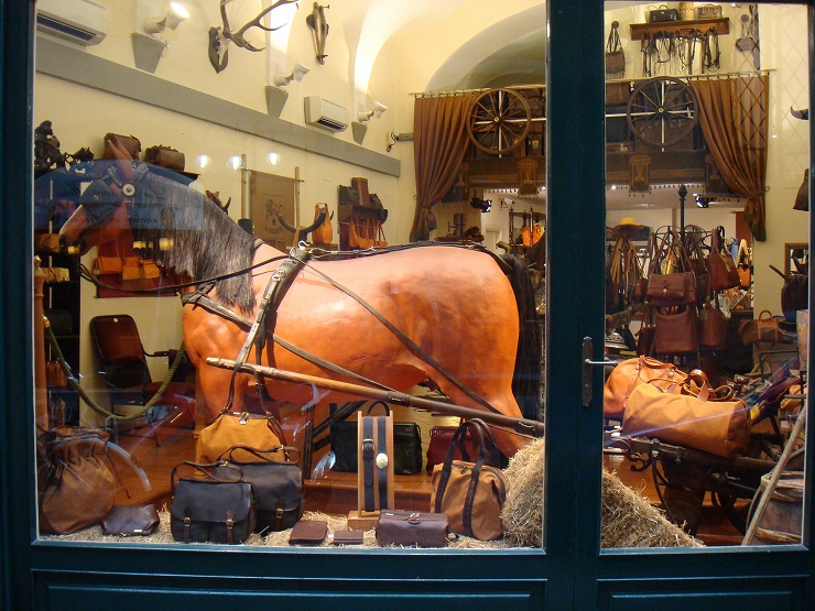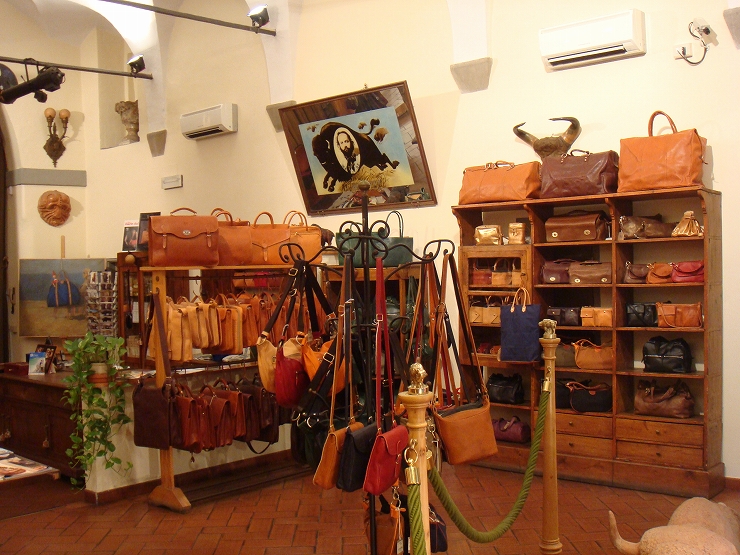 トスカーナ地方の名産である、レザーを使ったジャケットやバック、小物までありました。