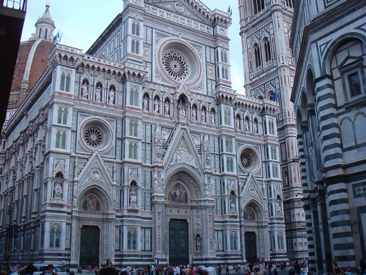 サンタマリアノヴェッラ教会は寄せ木細工のような美しいシルエットが印象的で600年前の14世紀に造られました。