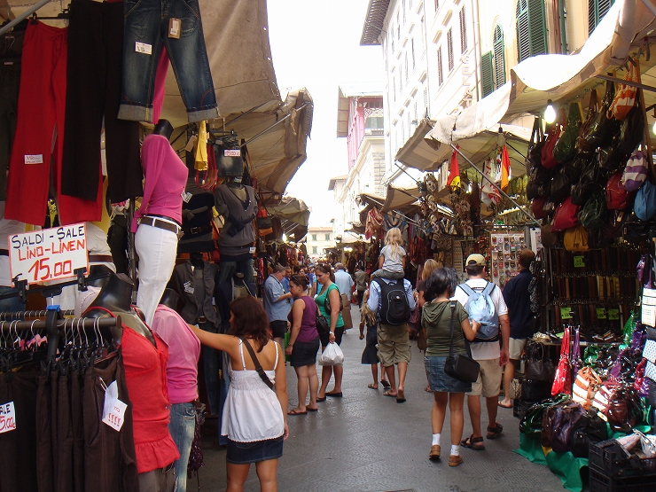 市場はドゥオーモ広場からサンタマリアノヴェッラ駅まで続く大きなもので、毎日活気に満ちています。