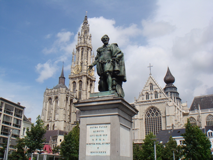 まずはアントワープで一番有名な画家、ルーベンスとその後ろにノートルダム大聖堂。