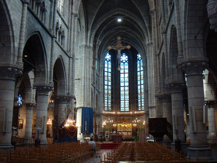 大聖堂の中に入ると、これまた大きい十字架がかけられており、みんな椅子に座ってお祈りしてました。