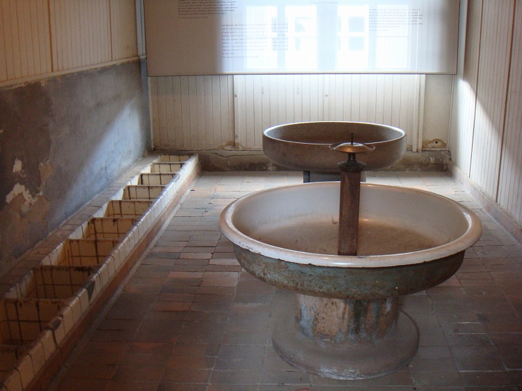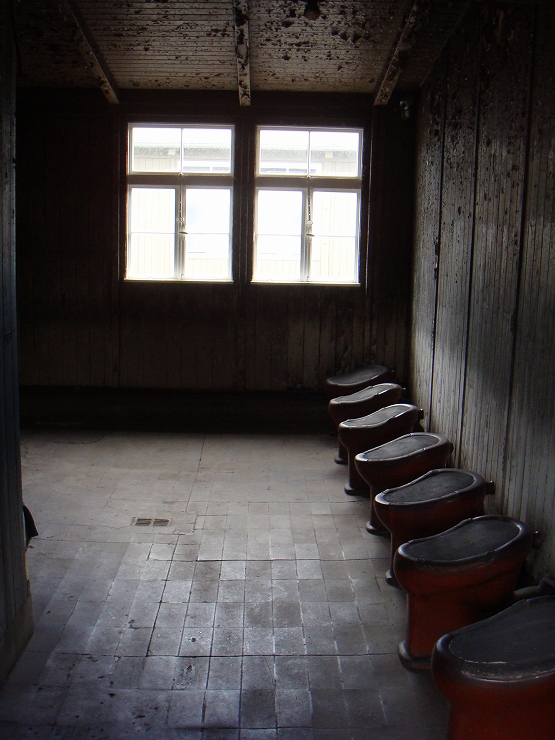 その時代の舞台であったザクセンハウゼン強制収容所に収容されていた洗面所・トイレ・収容棟です。
