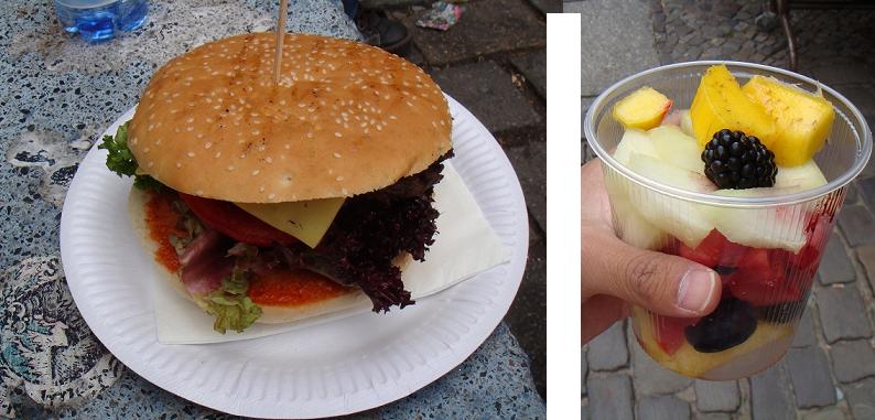 昼はジャーマンソーセージ、ハンバーガー等。たまにこういった果物が安いので合わせて食べてます。