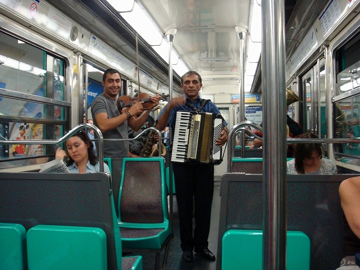フランスでは電車に飛び乗ってきて、陽気に演奏し始めます。