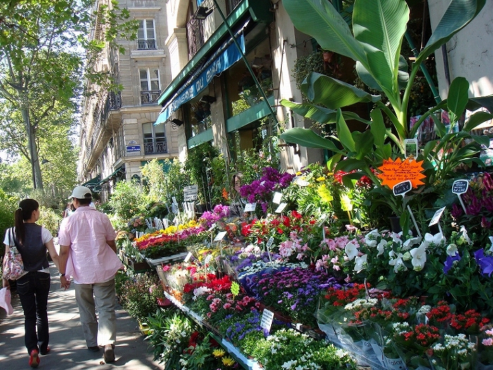 パリでは、所々で何件も連らなって花屋があり花市とも言われていて、