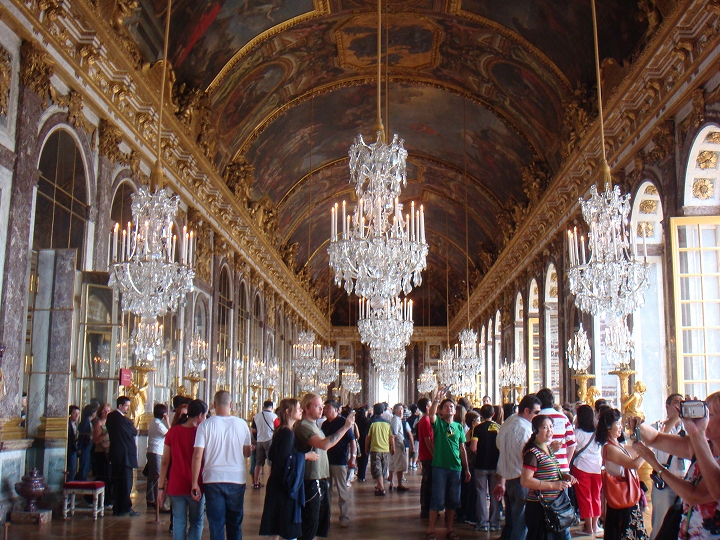 大きい鏡が17枚あり、その反対側には17枚の大きな窓があります。