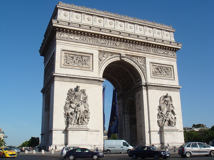 凱旋門はシャンゼりーゼ大通りの終わりに どしりと構えていました。
