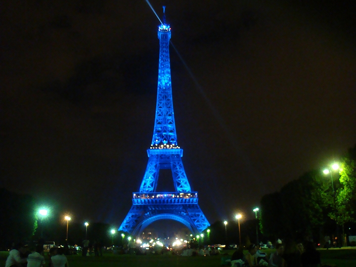 特にエッフェル塔は一時間に一度、10分間フラッシュをたくように点滅し、その後このターコイズブルー一色のムード満点な色になります。