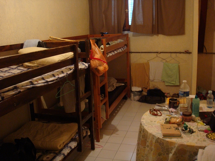 男女別のドミトリーが3部屋×4ベットあり、あとは共同リビング・キッチンです。