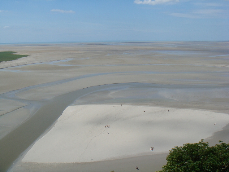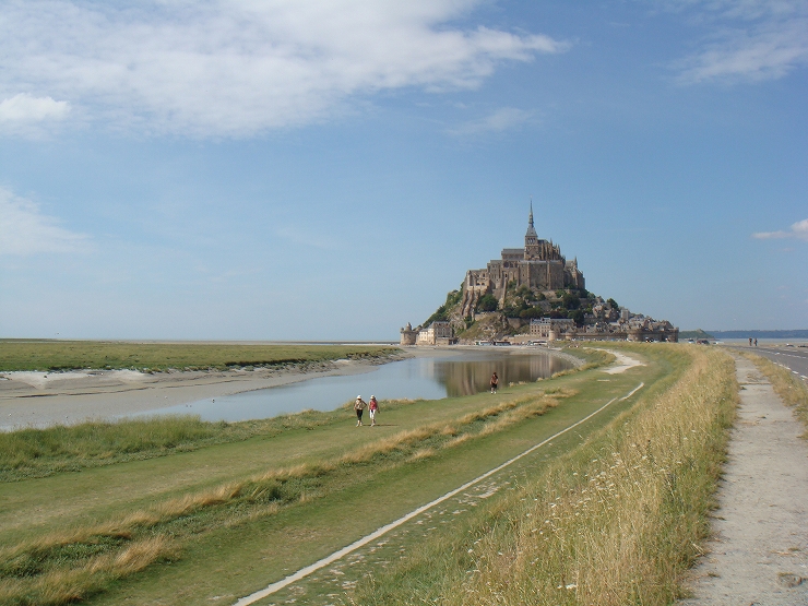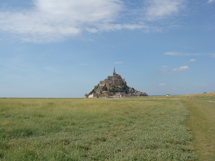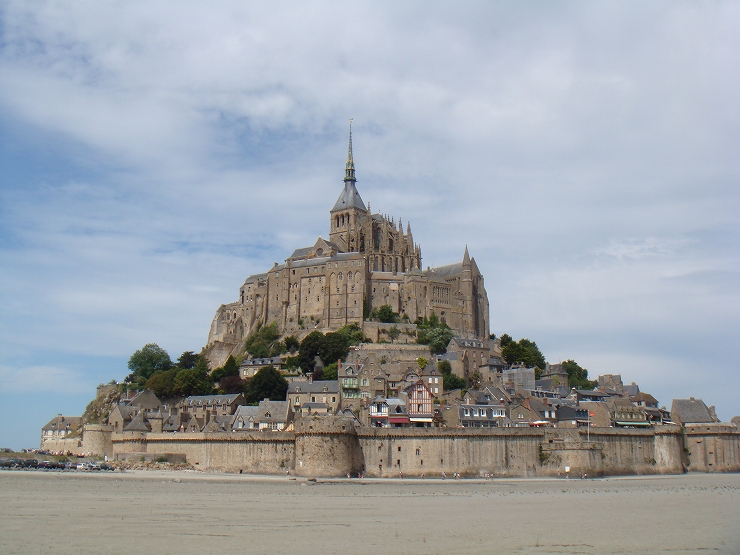 サンマロ同様、やはりここも潮の干満が激しいため、満ちているときは修道院は海に覆われ、引いている時には一面砂漠のように干上がり、砂地へと変化しまさに神秘です。