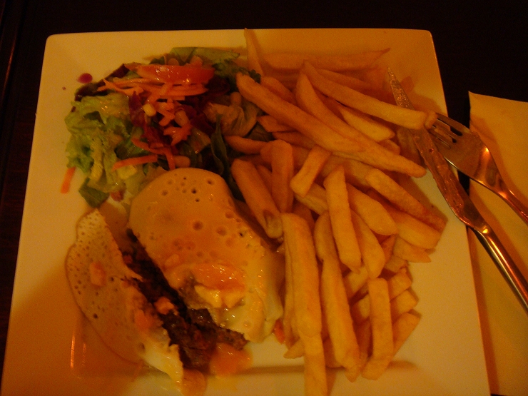 バスの関係で夕方にサンマロに戻り、サンマロの旧市街の城壁の中で、最後の晩餐的なちょっと豪華なディナーを青木ちゃんと食べに行きました。これで6.5ユーロ(1100円)。