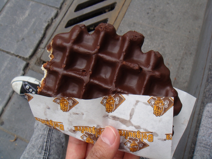 ベルギーのワッフルも記念に食べました。ワッフルはちょこっと揚げてあり、